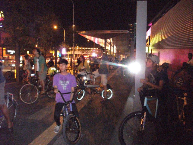 | The group started to gather at Ampang LRT Station from 9pm and a total of approximately 50 cyclists turned up for this mini carnival. We started to roll around 10.30pm. |